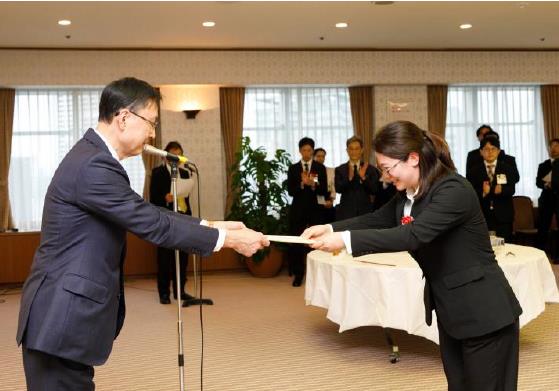 交付式では、内山俊弘理事長が、「メカトロニクス技術は日本の産業の発展と国民の幸福に具体的に寄与することが求められている。この観点からも当財団では研究テーマを審査しているが、採択された研究テーマは選りすぐりのものと言うことができる。これまで助成させて頂いた多くの研究が、論文として学会誌に、あるいは国際会議に発表され、また他の研究者に広く引用されるなどして、メカトロニクス技術の高度化に大きく寄与したものと考えている。助成事業を通じて社会に貢献し、我々の夢を形にしていくことが出来れば、これほど喜ばしいことない」と挨拶。続いて、内山理事長から各助成対象者へ交付証が授与されました。最後に懇親会が催され、経済産業省や各教育機関の関係者、NSK社員、助成対象者などが集まり、歓談が尽きない盛会となった
