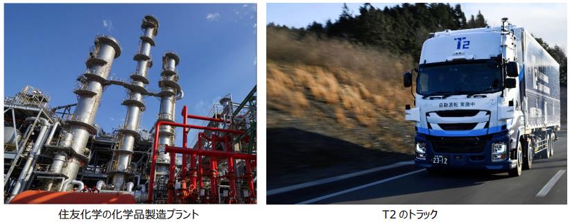 ドライバー不⾜が問題化する中で、今回の実証では、住友化学グループが⽣産する複数の化学品を対象に、T2が開発したレベル 2*2⾃動運転トラックを⽤いて関東から関⻄までの⾼速道路⼀部区間を幹線輸送することで、安全な輸送や環境への配慮がとりわけ求められる化学業界において、サステナブルな物流オペレーションが構築できるかを検証する。