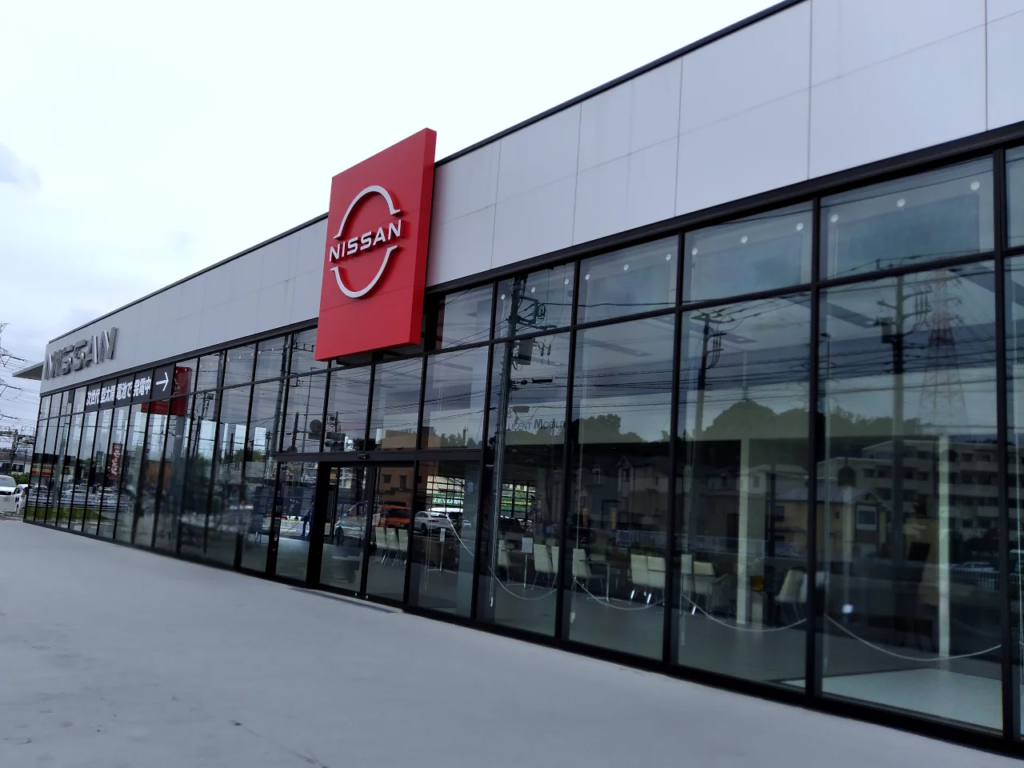 日産神奈川販売R1東戸塚店のガラス上部に設置した太陽電池