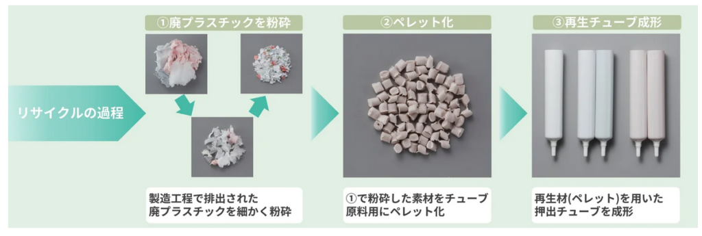 今回の実証実験結果を踏まえ、工場内の廃プラスチック材を活用した押出チューブの水平リサイクルの実現(製品化)を推進していく。また長期的な目標として内容物の充填工場で発生するロス品や、消費者が使用した使用済容器についても、再生プラスチック材の原料としての水平リサイクルも検討していく。(PHASE2)