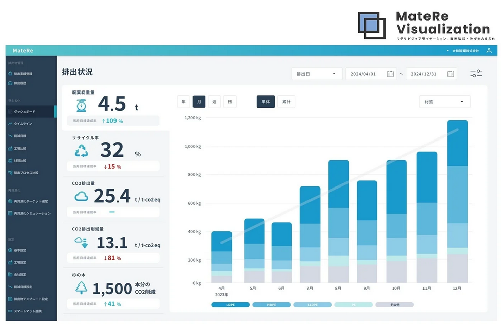 同取り組みはdigglue社が提供している循環型デジタルプラットフォーム「MateRe(マテリ)」を活用し、温室効果ガス(GHG)排出量やトレーサビリティデータの可視化を行うことでステークホルダーへの提案を進めていく。この2社による取り組みは循環経済への更なる理解醸成と取組促進を目指すための官民連携強化を目的とした官民パートナーシップである「循環経済パートナーシップ(J4CE)」にも取組み事例を掲載している。