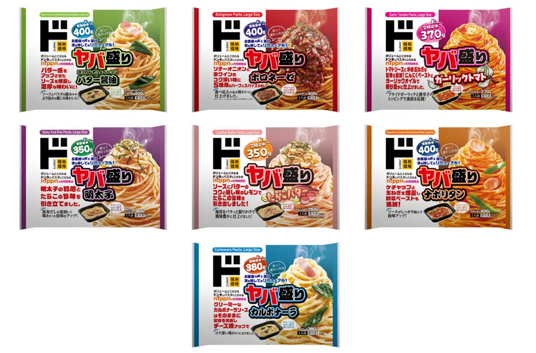 ※1 「ヤバ盛りパスタ」シリーズ;ドン・キホーテのプライベートブランド「情熱価格」で展開するボリュ-ムとパスタにこだわる冷凍食品。