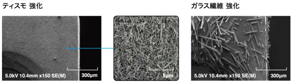 G-ZERO MP1の開発には、大塚化学との材料×機械の共創体制が大きな役割を果たしている。2023年の資本業務提携から、TISMO(チタン酸カリウム繊維)をベースとした大塚化学独自の機能性複合材料「ポチコン(POTICON)」を3Dプリンティング用途に最適化。スーパーエンプラに対する材料製造・造形・評価の開発工程を経て、高強度かつ安定した造形を実現した。材料技術により後押しされた品質は、新しい価値を3Dプリンタに与える。