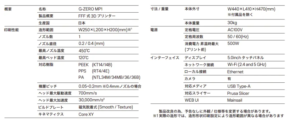 ■PEEK対応国産超高速産業用3Dプリンタ『G-ZERO MP1』