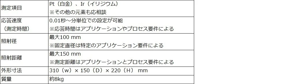 寿命約1万時間※6のX線管と独自設計の高性能な光学系を採用することにより、高感度かつ安定した測定を長期間にわたり可能にする。応答速度は、最短0.01秒(世界最速クラス)から分単位で設定でき、高精度かつ高速な測定を実現する。