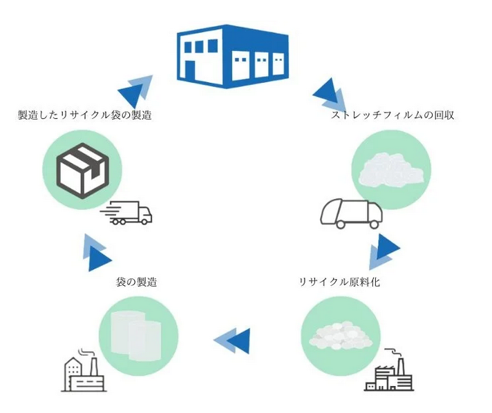 同プロジェクトでは、マツダ株式会社が製造・物流過程で使用したプラスチック包装材(ストレッチフィルム)を、廃棄(焼却)するのではなく、回収~ペレット加工~再商品(ビニール袋)化する取り組みについて二酸化炭素の排出量を算定しました。