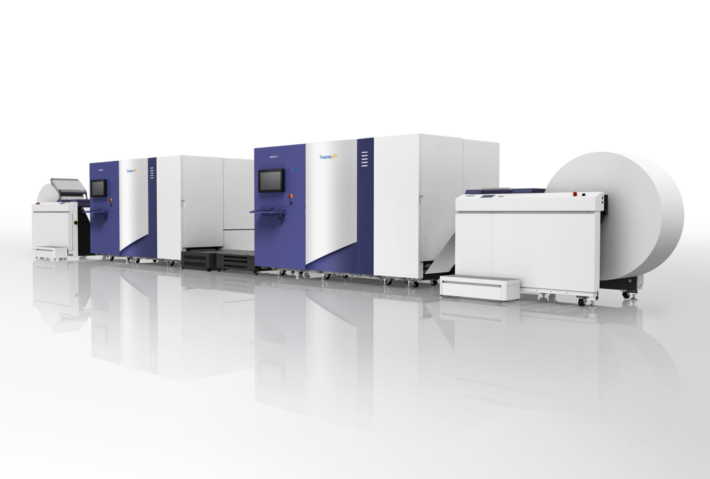 から最終商品を一貫生産するデモンストレーションと、新製品「Truepress JET 520NX AD」による225m/分の印刷速度を駆使した、トランザクション市場向けの高速印刷のデモンストレーションを行うなど、多品種生産における実践的なソリューションを紹介する。