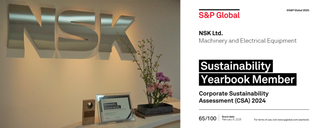 S&P Global社は、毎年、世界の主要企業を対象に、「ガバナンス・経済」「環境」「社会」の3つの側面から持続可能性(サステナビリティ)を評価している。産業分野別に、特に評価の優れた企業を「The Sustainability Yearbook Member」に選定している。62の産業分野について世界の主要企業約7690社を対象に評価が行われ、780社が「The Sustainability Yearbook 2025」に掲載された。NSKは、「IEQ Machinery and Electrical Equipment」の産業分野において4年連続の選定となる。