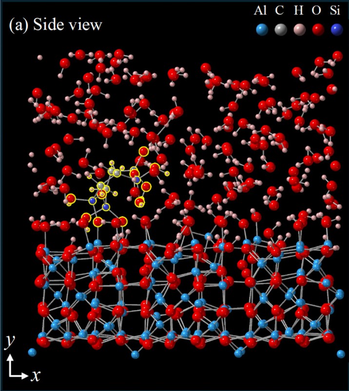 さらにスパコンを用いた大規模計算を用い、BTSEやTMOSの場合に吸着する分子により、表面の水酸基がH+(プロトン)を放出しやすい構造と放出しにくい構造があることを示した。またその放出しやすさは、吸着する分子の種類とその吸着形態に強く依存しており、接着界面で高いルイス酸性を示す特定の構造が存在することを明らかにした(図3)。