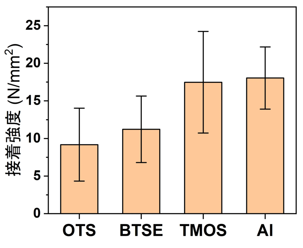 ※3 OTS、BTSE、TMOS:OTSはOctadecyltrimethoxysilane (化学式:H3C(CH2)17Si(OCH3)3)の略、BTSEは1,2-bis(triethoxysilyl)ethane (化学式:(C2H5O)3Si-CH2CH2-Si(OC2H5)3)、TMOSはTetramethoxysilane(化学式:Si(OCH3)4)。