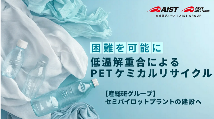 【ケミカルリサイクル】産総研とAISol、「低温解重合によるPETケミカルリサイクル」セミパイロットプラントの建設へ