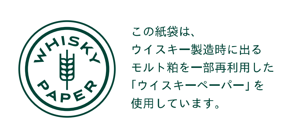 使用素材:ウイスキーペーパー(原料:サントリー白州蒸溜所で発生するモルト粕を紙全体に対して5%使用)