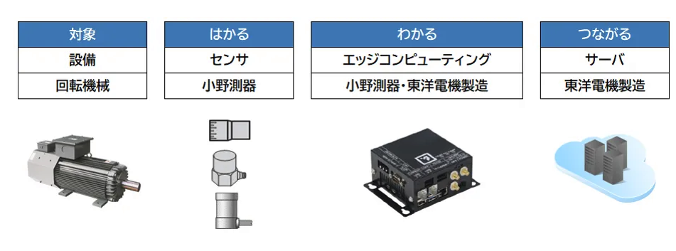 小野測器の提供価値である"はかる・わかる・つながる"を実現するため、新センシング領域と計測プラットフォーム機能拡大に注力している。小野測器が保有している回転機械を対象としたセンシングや分析技術と東洋電機製造の持つICTソリューション技術を組み合せ、新たなソリューションを生み出すことを目指す。