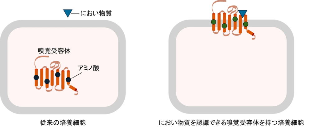 においの感じ方を調べるには、嗅覚受容体がにおい物質を認識したときの反応を確認する必要がある。しかし、ヒトの鼻で直接実験することはできないため、通常は嗅覚受容体を発現させた培養細胞を用いる。嗅覚受容体は、鼻では細胞表面に存在することでにおい物質を認識するが、培養細胞では、表面に安定して存在できず細胞内にとどまってしまうため、におい物質を認識することができない。そのため、これまで反応を確認できたヒトの嗅覚受容体は全体のわずか1割程度にとどまっていた。