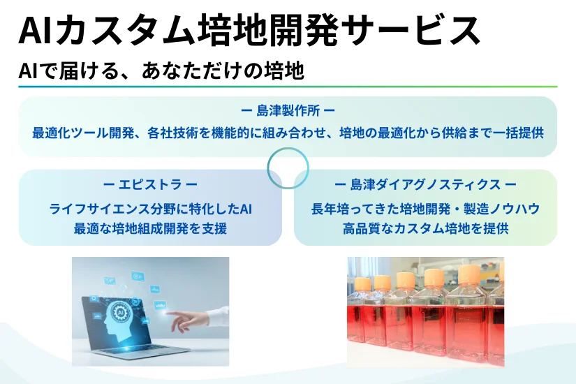 【バイオ医薬品・再生医療】エピストラ、島津製作所・島津ダイアグノスティクスと共同で「AIカスタム培地開発サービス」提供開始