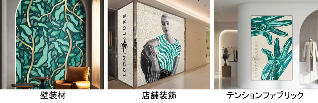専用メディアは、マット、スエード、シルバー、ゴールド、パール、カメレオンなど豊富な種類をラインナップ。また、高い耐擦過性を実現したものや、壁紙などの施工物の性能を定めた米国のType IIに対応したメディア、さらには、テンションファブリックやロールアップバナーなどの屋内サイン&ディスプレイ用も用意。用途に合わせて最適なメディアを選択できる。