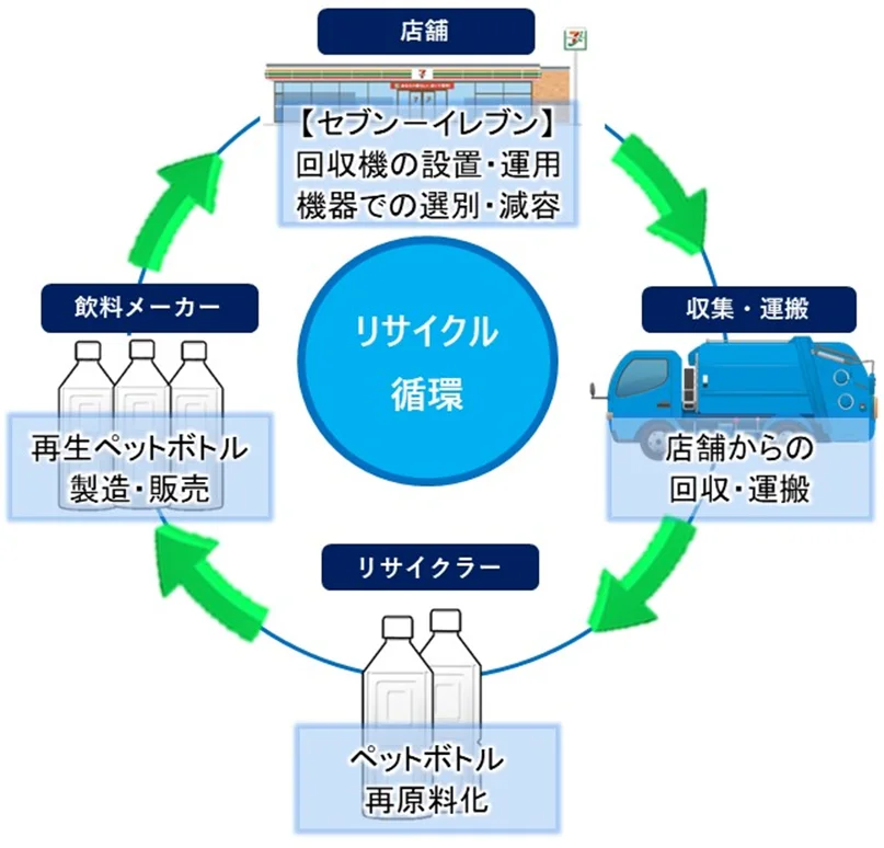 セブン‐イレブン・ジャパンでは、2015年12月より、東京都江東区内の5店舗でペットボトル回収機の実証実験を実施し、2017年12月から、環境省の省CO2型プラスチック高度リサイクル設備導入事業として、東京都と埼玉県の店舗に設置し、その後、全国の店舗へ順次設置を拡大してきた。そして、2025年10月24日の函館市内の店舗への設置により、全都道府県で合計4451台の設置が完了した。