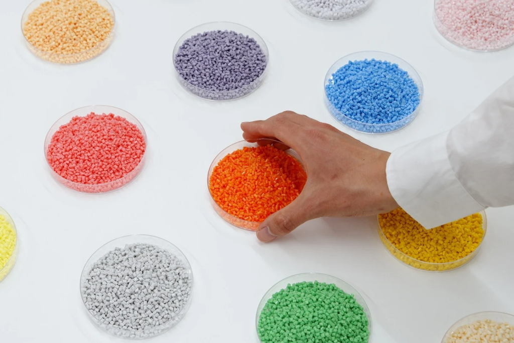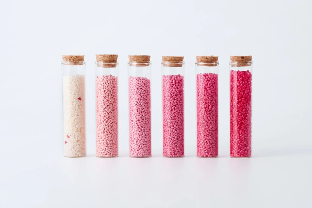 色付きのペレットは一般的に、顔料とペレットを大型の混練機で混ぜることで作られているが、この方法では色合いの調整のたびに大量のペレットが生産されてしまい、少量の材料で十分な試作シーンでは不向き。CONERIなら、卓上でわずか100gからペレットの調色が可能。少量かつ短時間で柔軟な調色ができるため、こだわりの色を引き出すことができる。