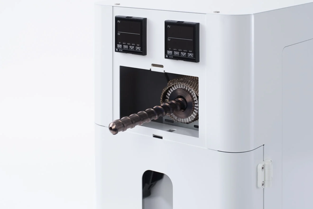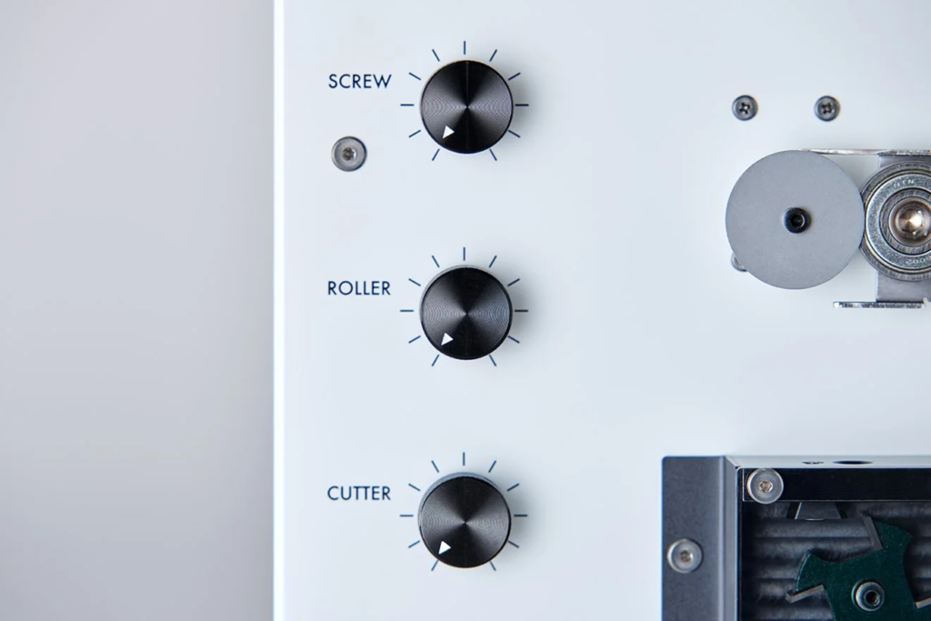 「CONERI」のインターフェースには、各機能を直感的に操作できるアナログツマミを採用。各機構の動作をツマミによって細かく調整することで、ペレットの太さや長さを自在にコントロールできる。ペレットの仕上がりを目視で確認しながら、その場で最適な条件を追い込んでいくことができる。