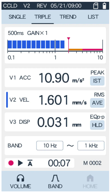 ●V3バンドで3つの振動値を同時に計測・表示