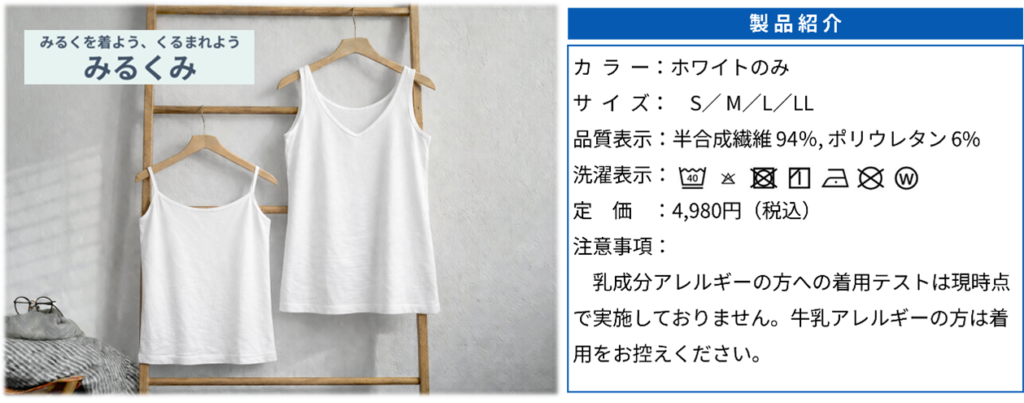 そして誕生したのが、とろけるような滑らかさを実現した「みるくみ」インナーウェアとなる。