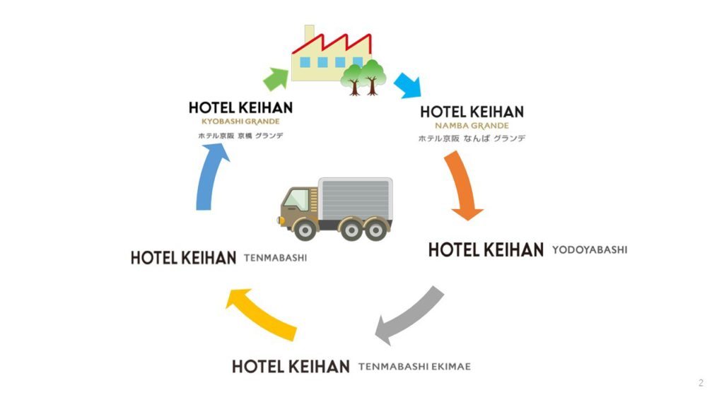 2025年8月中旬から本格的な回収を始め、大阪府内のホテル京阪5店舗において月間約1,920kg、年間約23トンの廃棄物削減が見込まれる。