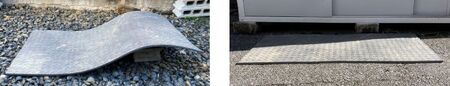 従来、敷板は鉄製が多く使われていたが、重量があるため移動や設置にはクレーン付きトラックが必要となる。濡れると滑りやすくなり、作業員や運搬車のスリップも起きやすくなる。さらに、鉄製敷板はスクラップとして売却できることから盗難対策も課題となっていた。