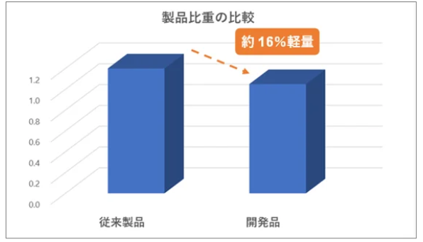 既存材料と比較し、約16%軽量化され、運搬時・施工時の作業負担を軽減できる。