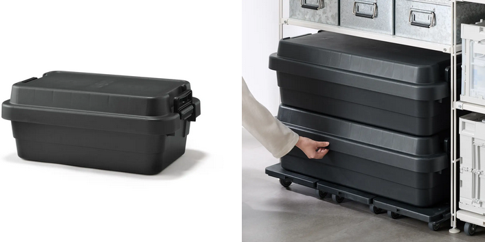 車の荷台などの限られたスペースや棚下などのデッドスペースにも収納しやすいサイズで、防災アイテムや食品ストック、レジャー用品などをまとめておくのに便利。