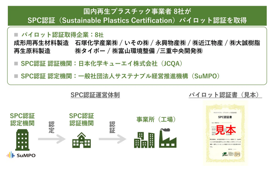 【再生プラスチック】SPC認証、国内企業8社がパイロット認証を取得