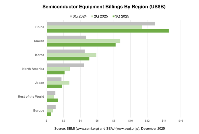 【半導体】世界半導体製造装置販売額、2025年第3四半期は前年同期比11%増