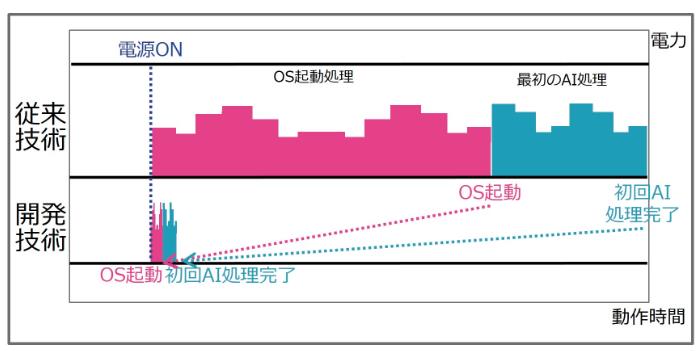 ・電源ONからOS起動を経て最初のAI処理完了までのエネルギー効率が従来比で50倍以上