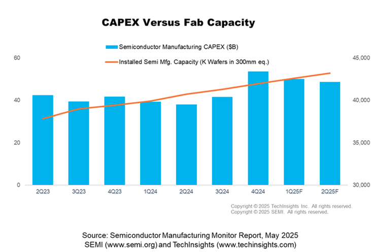 企業が貿易政策の不確実性とサプライチェーンの適応という二重の課題に対峙して行く中で、SEMIならびにTechInsightsは、2025年に業界が通常の季節変動パターンから外れた動きをすると予想。AIおよびデータセンターからの需要は明るい材料だが、それ以外の分野では、市場が関税や地政学的な不確実性の変化に対応するにつれて、投資の先送りや需要の変化が見られるであろう。