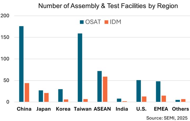 SEMI(本部:米国カリフォルニア州ミルピタス)は2025年7月1日(米国時間)、TechSearch Internationalと共同で2025年版の世界組立・テスト工場データベースを発表した。このデータベースは、半導体業界の組立・テスト工場の最も包括的なデータベースであり、IDM(垂直統合型デバイスメーカー)とOSAT(半導体後工程受託)の両施設をカバーするものである。