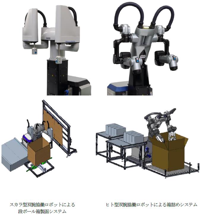(1)スカラ型双腕協働ロボットによる段ボール箱製函システム