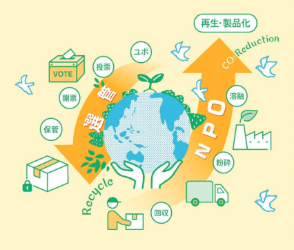 開票後の投票用紙は、各選挙管理委員会により次回選挙まで厳重に管理保管されたあと、廃棄されることが一般的であった。しかし、NPO選挙が新しい回収システムを導入し、2007年に初めて世田谷区で投票用紙の回収・リサイクルをはじめた。その後、東京都特別区・横浜市・川崎市などの自治体がこの活動に参画。更に2022年4月1日にプラスチック資源循環促進法が施行されたことで、現在も参画自治体が増大している。