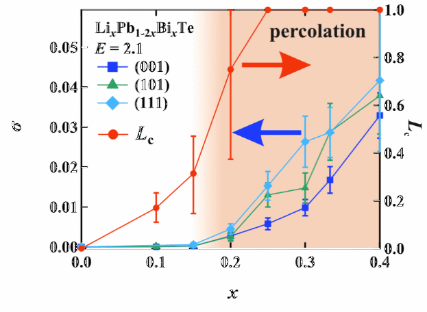 2.イオン濃度が約20%を超えると導電経路が結晶全体に広がることを確認し、この臨界値がパーコレーション理論の臨界点と一致することを示した。