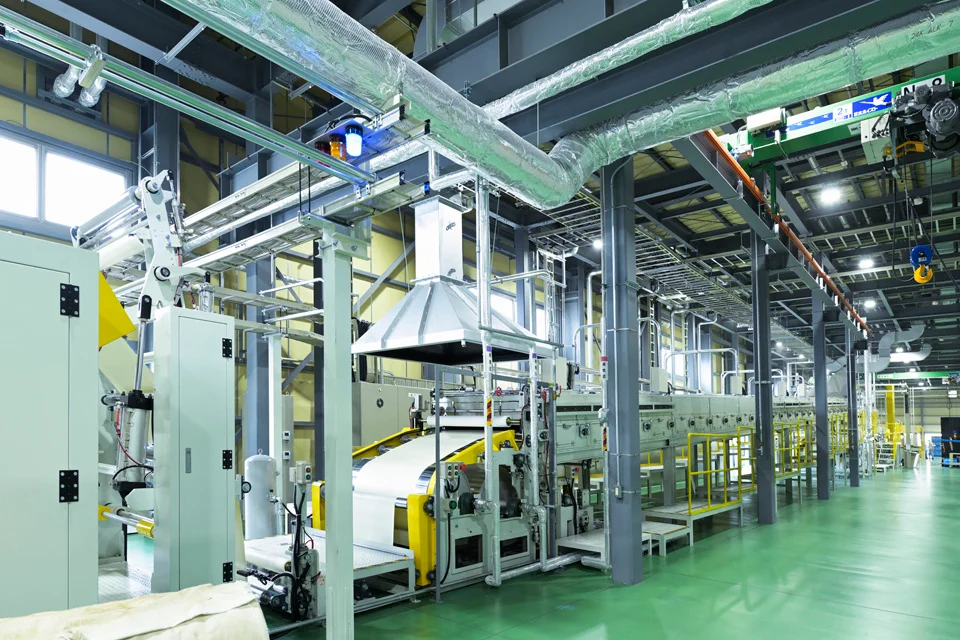 サンゲツグループの主力商品である壁紙市場では、量産壁紙における需給のタイト化が進んでおり、供給体制の強化が急務となっている。こうした背景を受けて、クレアネイトでは2022年から広島県東広島市に新工場の建設を進めてきた。今回の新事業所稼働により、クレアネイトの壁紙生産設備としてのキャパシティは年間約8000万mの増加を見込んでおり、既存の2拠点(岩手県の一関事業所、千葉県の成田事業所)と合わせた3拠点体制により、壁紙の安定供給を持続的に実現していく。