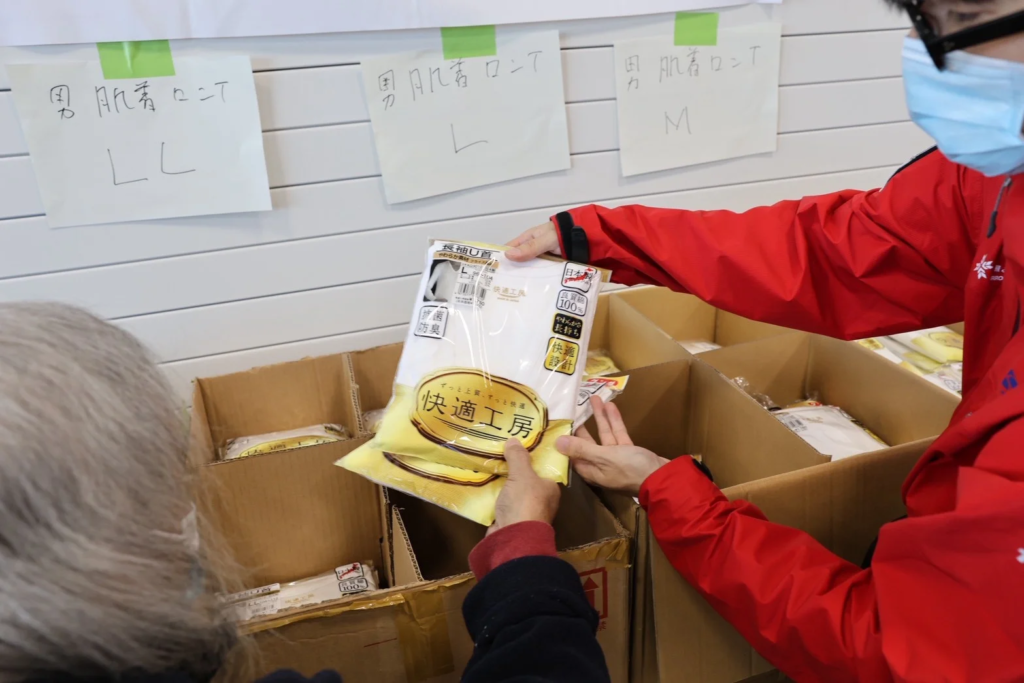 1.支援物資: 肌着(紳士、婦人) 合計1400枚