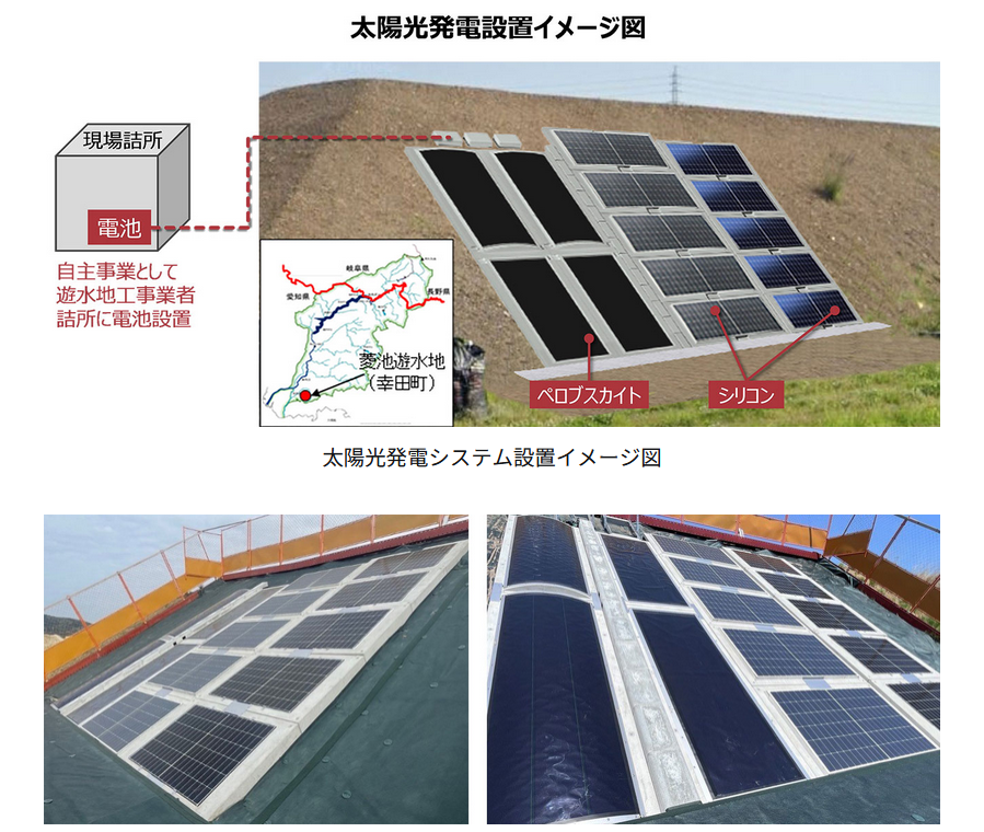 愛知県では、「矢作川・豊川カーボンニュートラルプロジェクト」として、矢作川・豊川流域をモデルケースに、水循環をキーワードに、官民連携で総合的かつ分野横断的に再生可能エネルギー等の創出などカーボンニュートラルを目指す先導的な取り組みを行っている。同実証事業は、愛知県が支援している水インフラの空間をフィールドとした技術開発の実証実験として、整備中の菱池遊水地の周囲堤の一部の法面を活用して太陽光発電を行うもの。河川管理施設等構造令上の構造および維持管理等へ支障を生じさせずに太陽光発電設備の設置および発電を行う技術を開発する。
