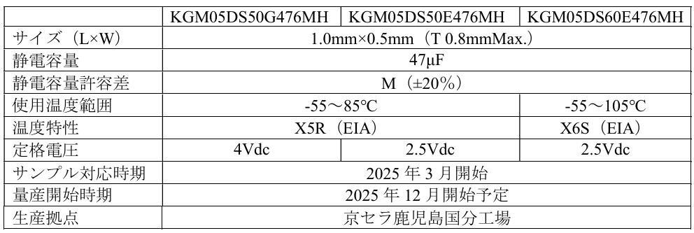 【小型積層セラミックコンデンサ】京セラ、1005サイズで業界最高静電容量値47μFのMLCC開発