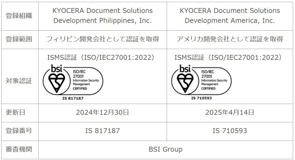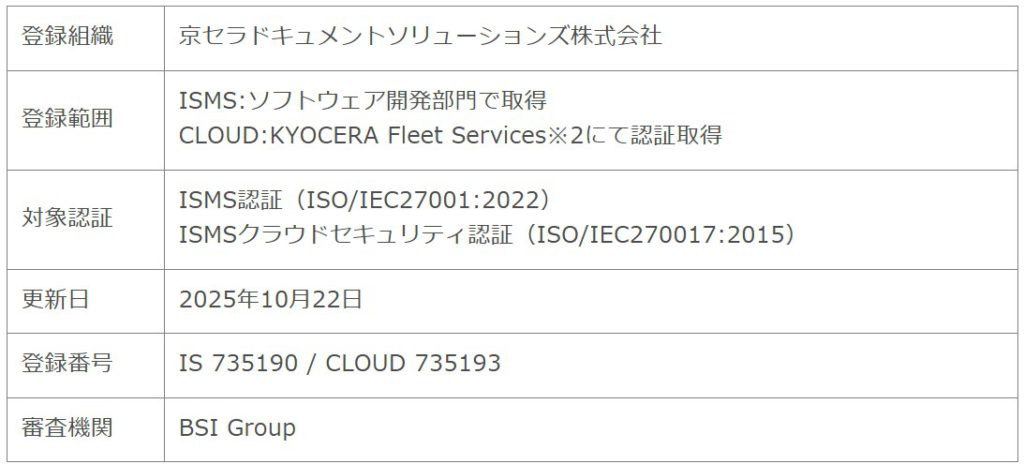 【情報セキュリティ】京セラドキュメントソリューションズ、ISMSおよびISMSクラウドセキュリティ認証更新