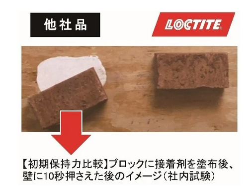 同製品は、強力な初期保持力により、従来必要とされていた両面テープやタッカー、クランプなどによる仮固定工程を不要にする建築用接着剤です。施工後すぐに高い保持力を発揮し、1人施工にも対応可能な製品設計となっている。