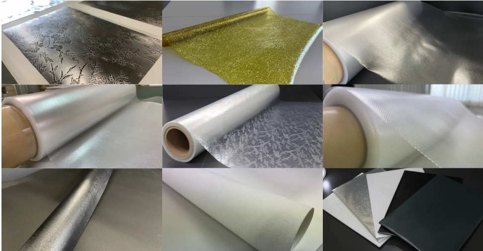 さらに、練込素材やコーティング(ハードコート、マットコート、離型コート)、印刷、蒸着などの処理済みフィルムにも加工可能。素材とエンボス柄の組み合わせにより、フィルムや樹脂の可能性を広げる。