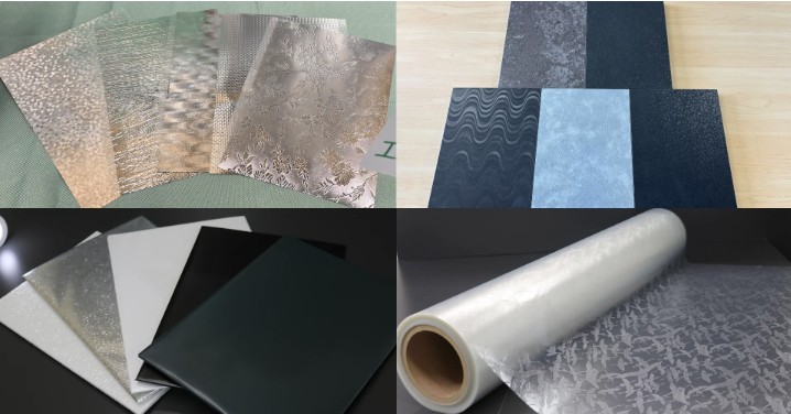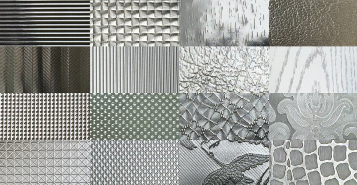 例:微細マット・梨地、格子・ダイヤ、ストライプ・ヘアライン、皮目・木目、その他意匠(オリジナル柄の作成も可能)
