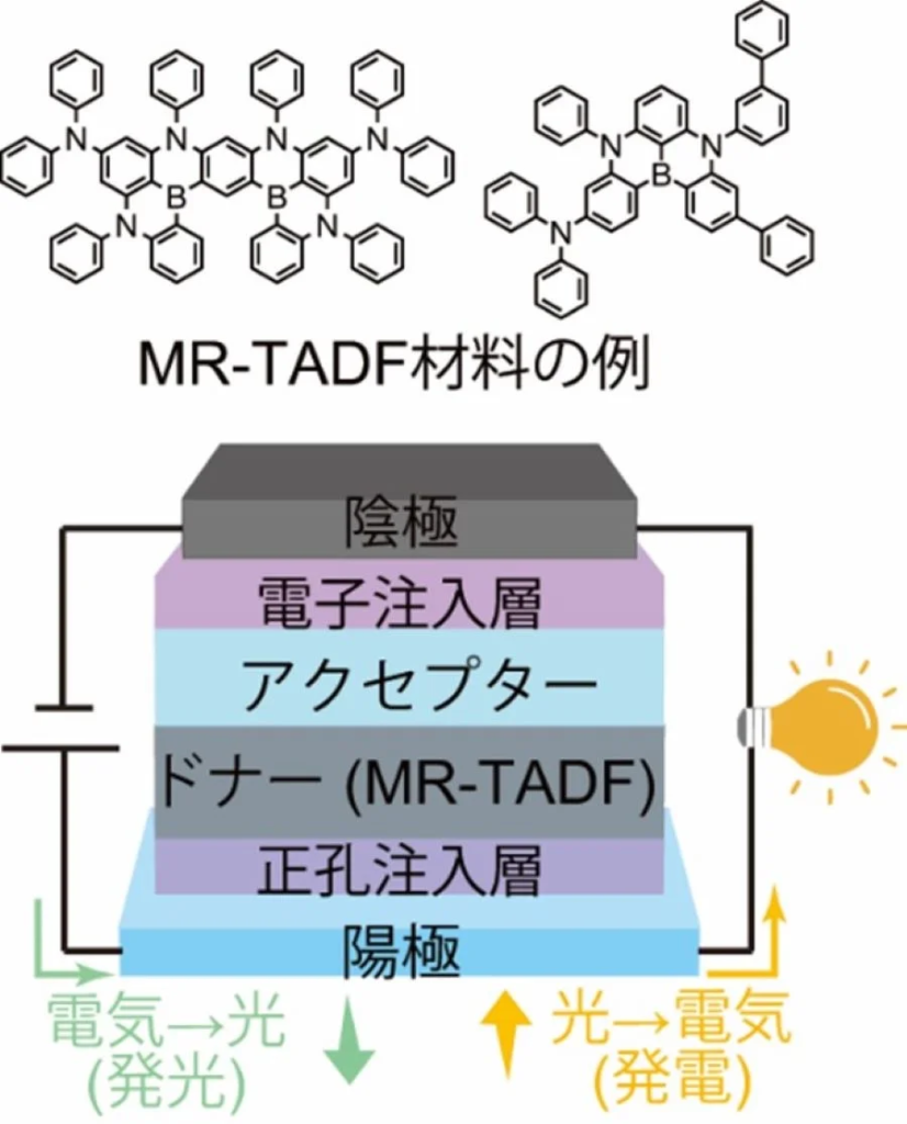 これに対して研究チームは、高い発光効率と強い光吸収特性を兼ね備えた「MR-TADF材料」を用いて、これまでの限界を突破する新しい多機能素子の開発に成功した。
