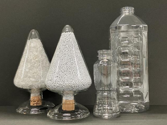 結 果: 油付き PET ボトル由来の再生材料は、IV 値や色などが指定 PET 由来の再生材料と同等の品質であり、これを用いて作製したボトルは、寸法や強度に問題はなく、懸念されていたにおい移りや着色もないことを確認した。