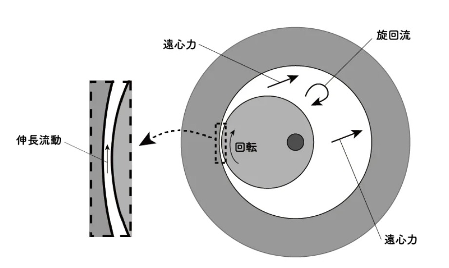 - 独自の「円筒ロータ機構」: 従来のスクリュー式やブレード式とは全く異なる独自の構造(特許出願中)を採用。円筒ロータによる高速回転が、混練炉内に強力な剪断(せんだん)力を発生させる。