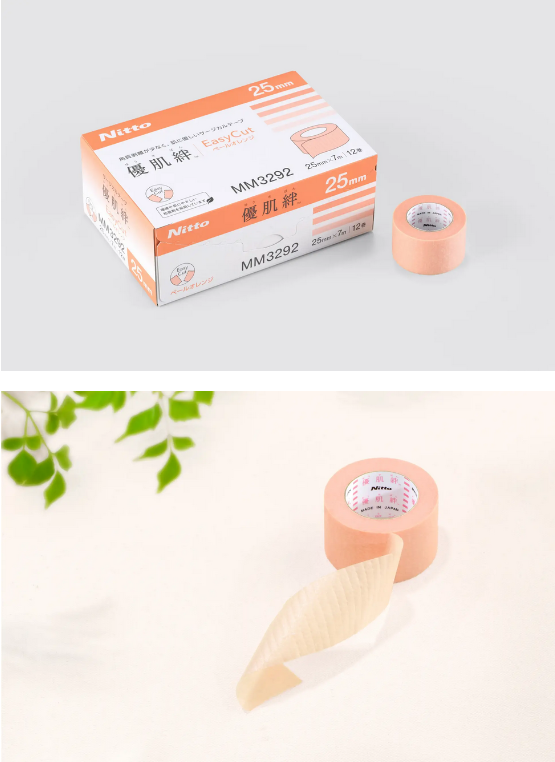 『優肌絆』シリーズは1996 年の発売以来30 年近くの間、医療現場で愛され続けるロングセラーのサージカルテープ。最大の特長は「テープをはがす際に肌の角質をはがしにくく、肌に優しい」点であり、Nitto グループ独自の『優肌ゲル粘着剤』がそれを可能にしている。透析治療などで同じ箇所に繰り返しテープを使用する方や敏感肌など肌の悩みを抱える方に使用されることが多く、医療従事者の皆様や患者様から高い信頼を得ている。