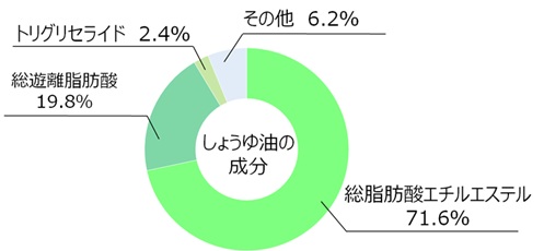しょうゆ油の成分は、脂肪酸エチルエステル。PHA生合成に従来使用されてきたい植物油脂(大豆油やパーム油)は、約97%以上がトリグリセライドであり、しょうゆ油と主要成分が異なる。今回の研究に用いたしょうゆ油の成分は以下の通り。